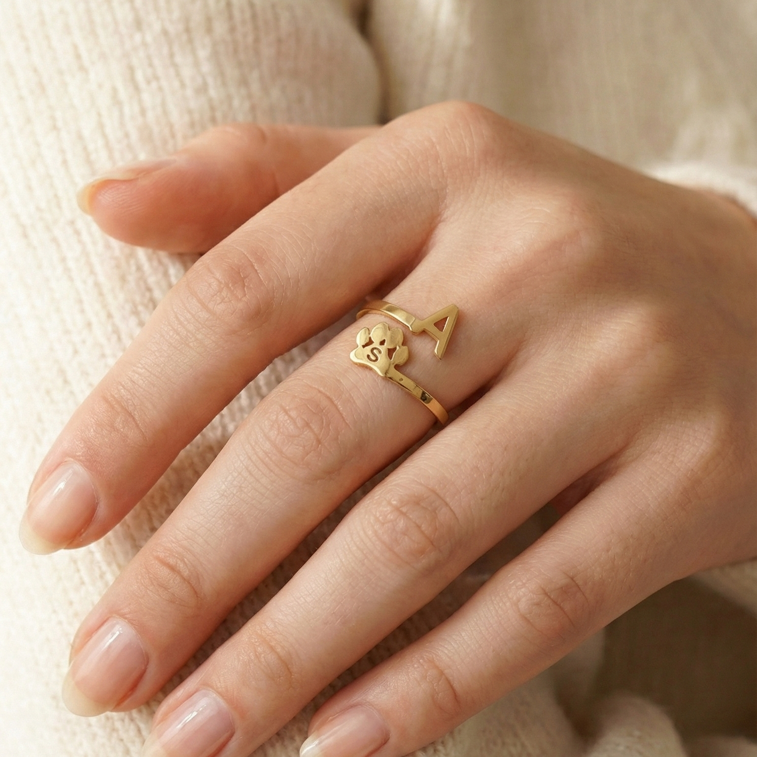This personalized paw ring is designed for women who see their pet as family. The paw represents your pet, while the custom initial stands for you as a simple, emotional reminder of the bond you share.